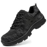 Une paire de chaussures robuste et conforme aux normes de sécurité concernant les chaussures de sécurité avec coquille de protection.
