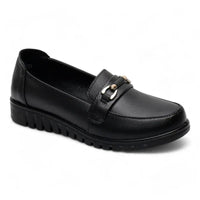 Ajoutez une touche de sophistication à votre garde-robe avec notre Mocassin Orthopédique Femme compensés élégants, agrémentés d'une mors raffinée. Fabriqués avec des matériaux synthétiques de qualité, ces mocassins noirs allient confort et style. Leur design compensé offre une hauteur flatteuse tout en assurant une démarche stable et confortable.