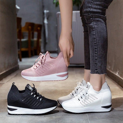 Scarpe da ginnastica con lacci in rete traspirante da donna, calzini ortopedici, scarpe con plateau