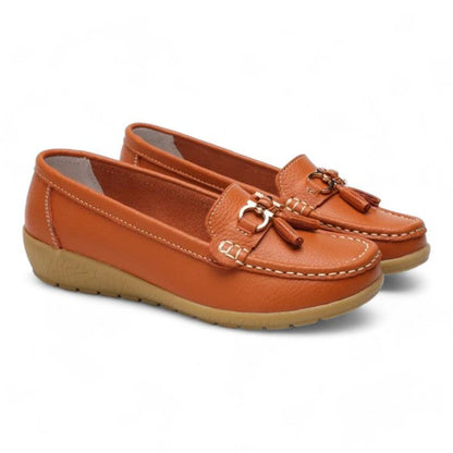 Scopri il massimo comfort con i nostri mocassini ortopedici da donna con suola con zeppa. Pensati per unire praticità ed eleganza, questi mocassini presentano punta tonda e suola stile barca. Offrono una sensazione di leggerezza e stabilità ad ogni passo, garantendoti un comfort ottimale per tutta la giornata.