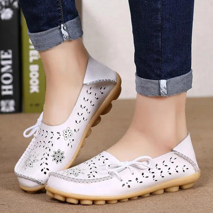 Mocassini Ortopedici Traforati da Donna in Crosta di Pelle