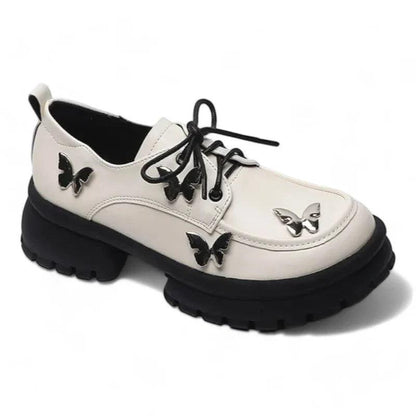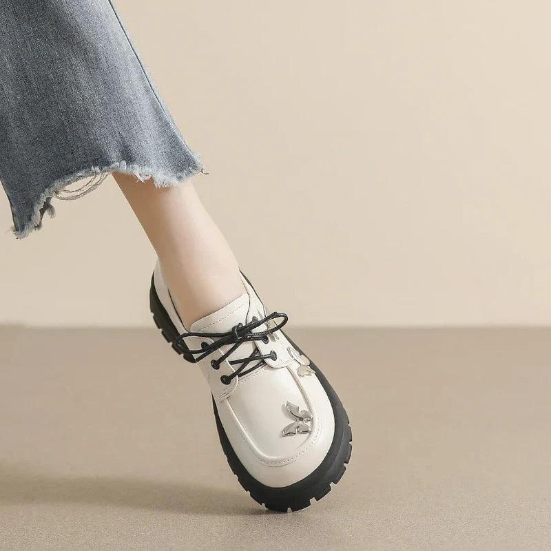Questi mocassini sono decorati con farfalle metalliche che aggiungono un tocco di originalità e glamour al tuo outfit. I lacci aggiungono una dimensione elegante e personalizzabile, perfetta per un look raffinato sia in città che all'aria aperta.