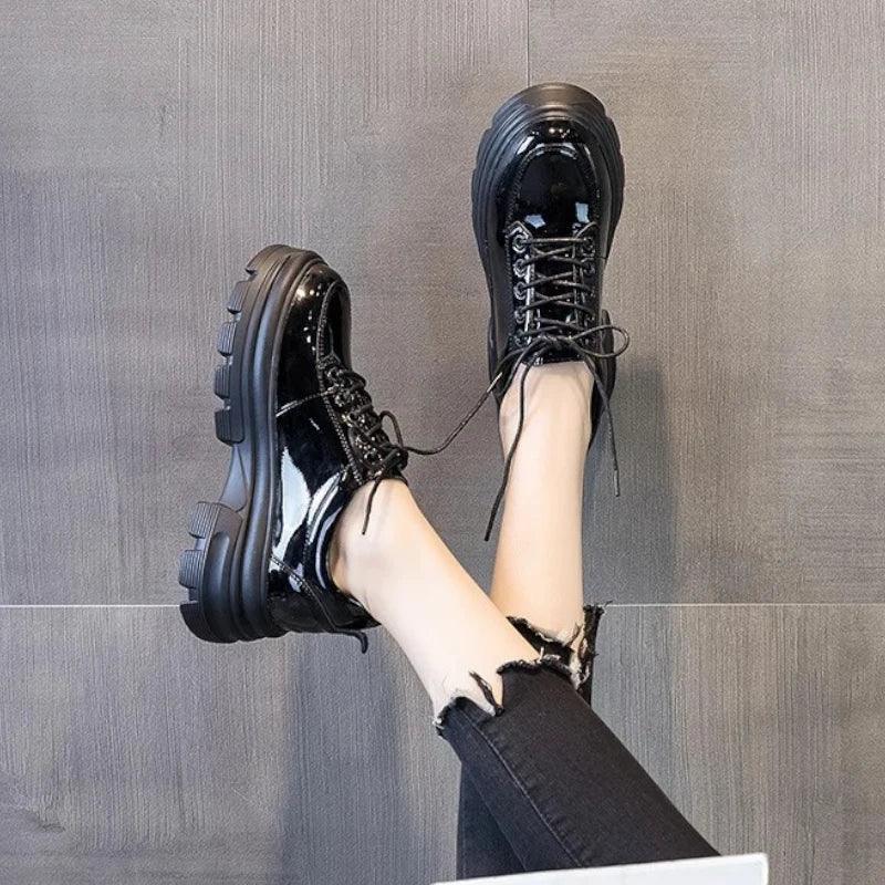 Mocassini Ortopedici da Donna in Zeppa in Vernice con Stringate