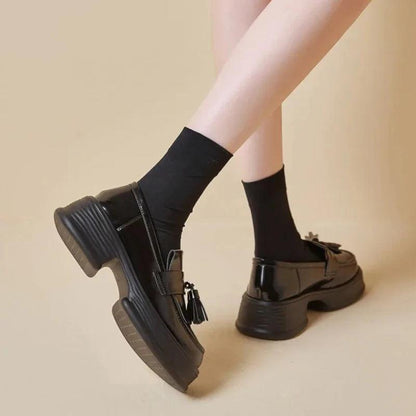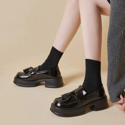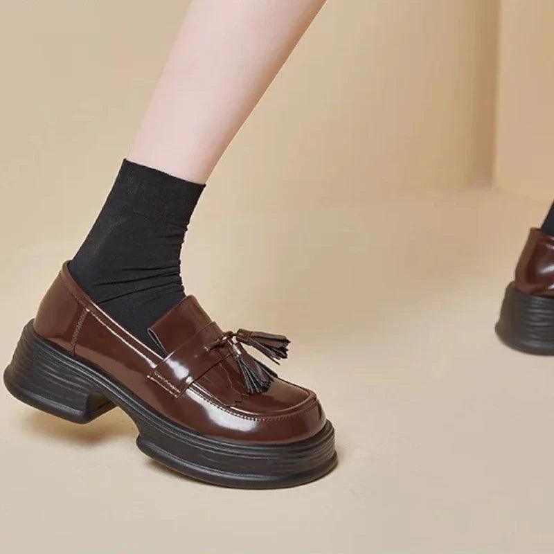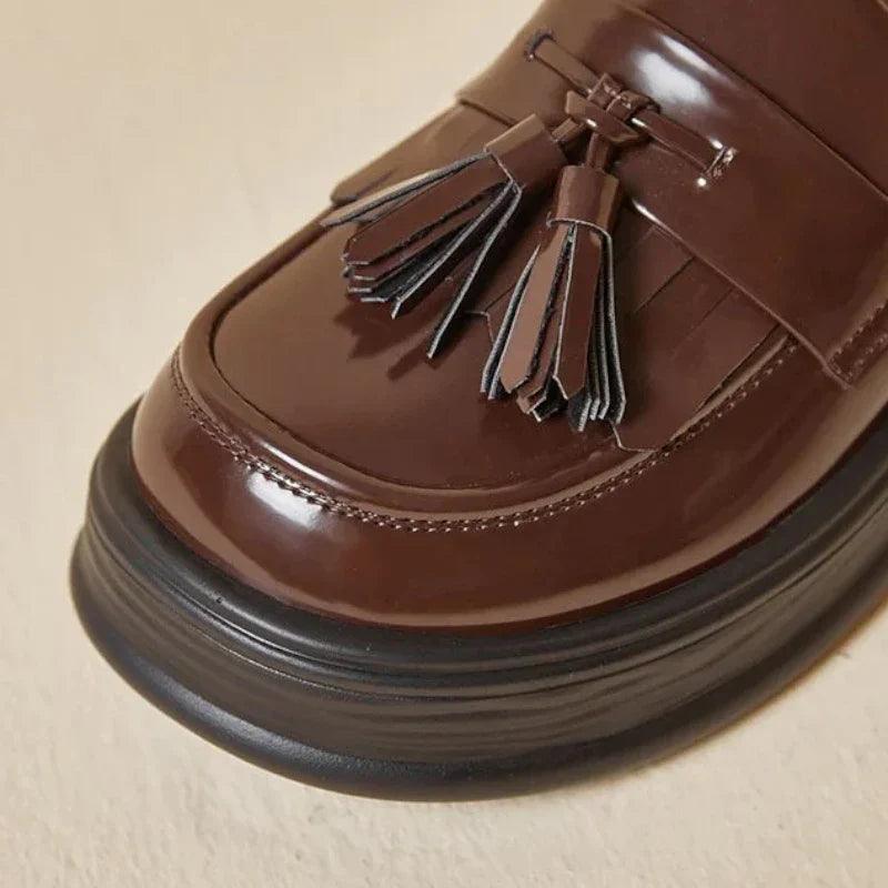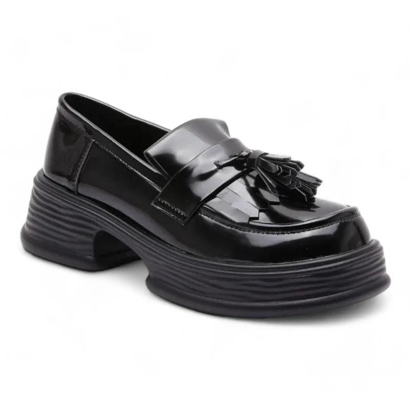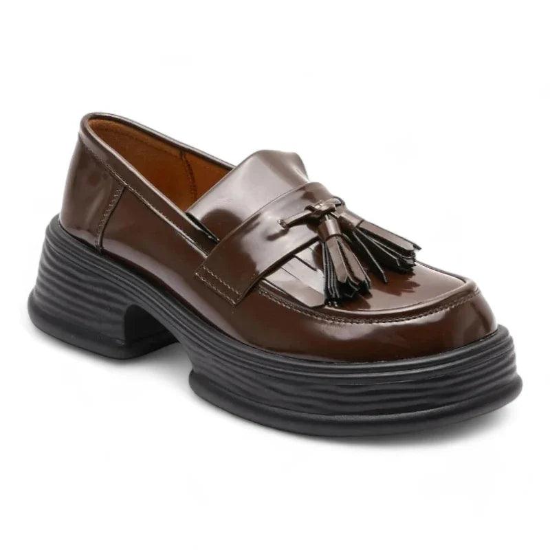 Realizzati in vera pelle, questi mocassini ortopedici da donna combinano perfettamente stile trendy e comfort lussuoso. La vernice e le frange aggiungono un tocco sofisticato, mentre la zeppa assicura un look moderno ed elegante. Che li indossiate tutti i giorni o per le occasioni speciali, questi mocassini sono una scelta irrinunciabile per un look chic e raffinato.