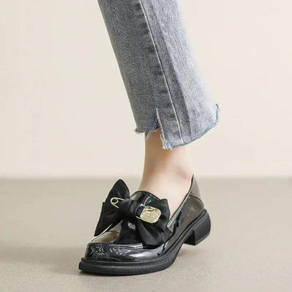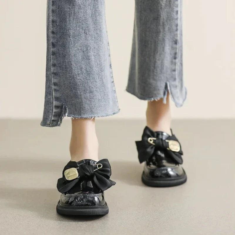 Scopri la perfetta combinazione di eleganza e comfort con il nostro mocassino ortopedico in vernice da donna decorato con un delicato fiocco in tessuto e una spilla chic. Pensati per le donne moderne che non vogliono sacrificare lo stile a favore del benessere, questi mocassini donano un tocco raffinato ad ogni outfit.