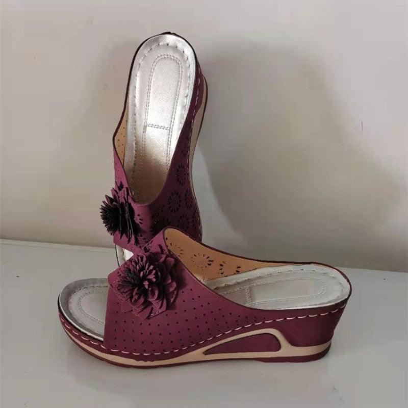 Sandali con zeppa intrecciati floreali - Traspiranti - Taglia grande per un comfort assoluto e uno stile elegante