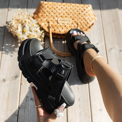 Esalta il tuo stile urbano con i sandali sportivi casual da donna Matriz. Questi sandali in similpelle di alta qualità sono caratterizzati da una suola con plateau e larghi cinturini, che li rendono la scelta perfetta per esprimere la tua personalità da regina retrò. Mettiti al centro dell'attenzione e libera la regina retrò che è in te con i sandali sportivi casual da donna Matriz. Questi sandali alla moda sono pensati per completare senza sforzo i tuoi outfit street style, aggiungendo un tocco di nostalgia al tuo look.