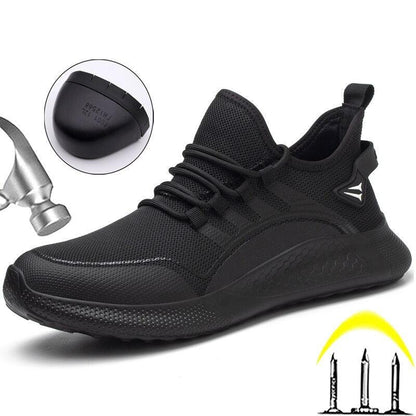 Matériaux de Qualité Supérieure : Nos les chaussures de travail sont confectionnées à partir de matériaux de première qualité. Elles sont dotées d'un embout en acier robuste et d'une semelle intermédiaire en acier, tout en étant conçu avec un tissu respirant et léger qui garantit un poids réduit et une meilleure aération. De plus, elles sont imperméables grâce à leur tige en maille avec une membrane étanche.