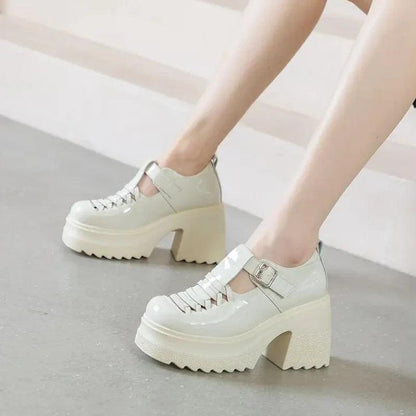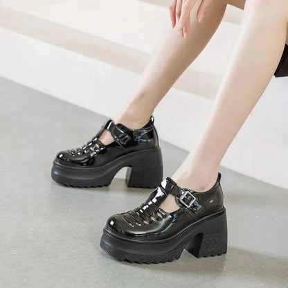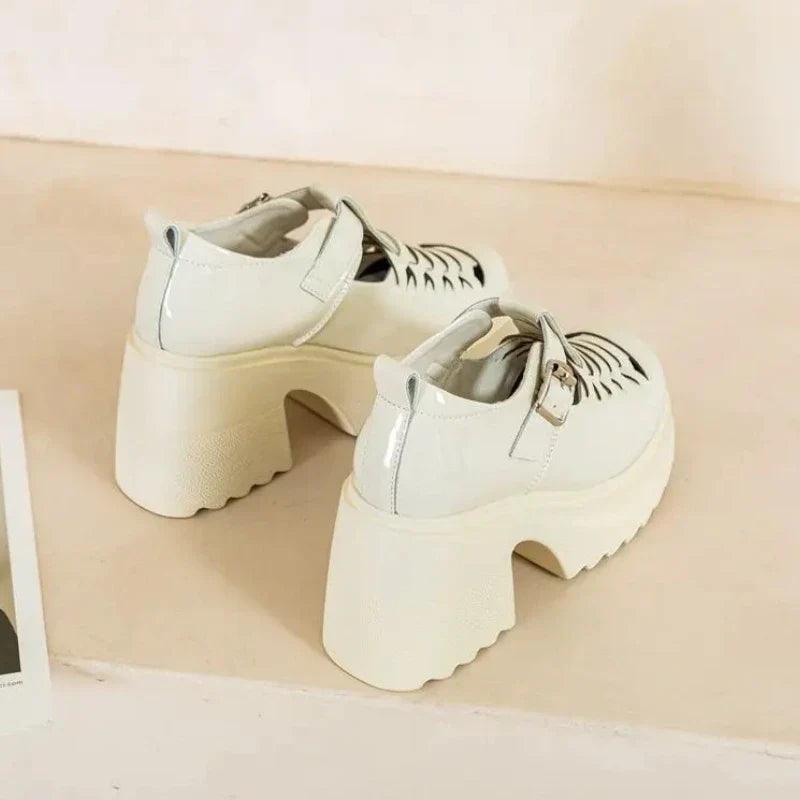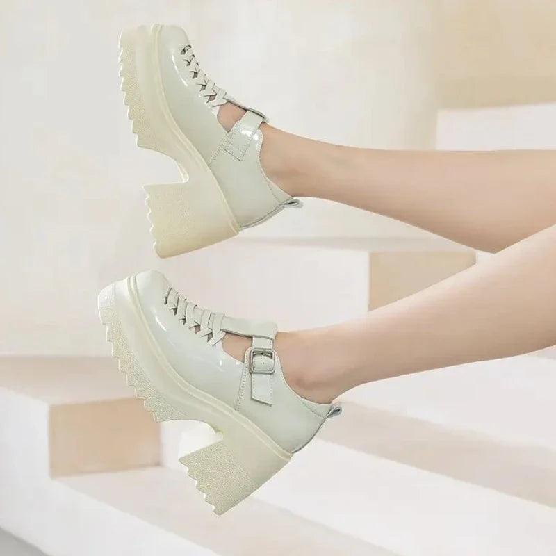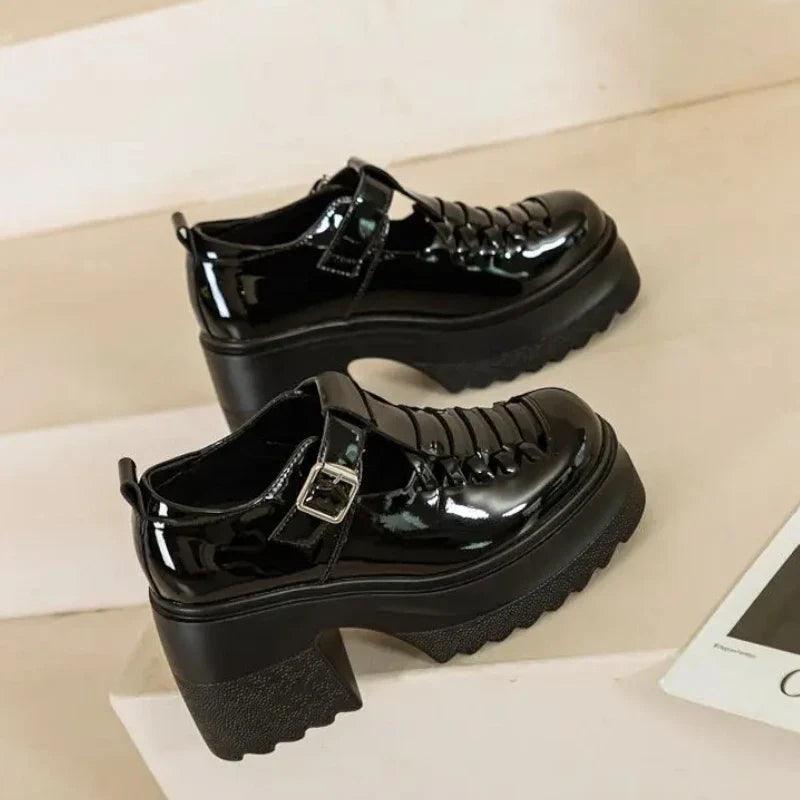 Mocassins Orthopédiques Femmes à Talons Hauts en Cuir Verni