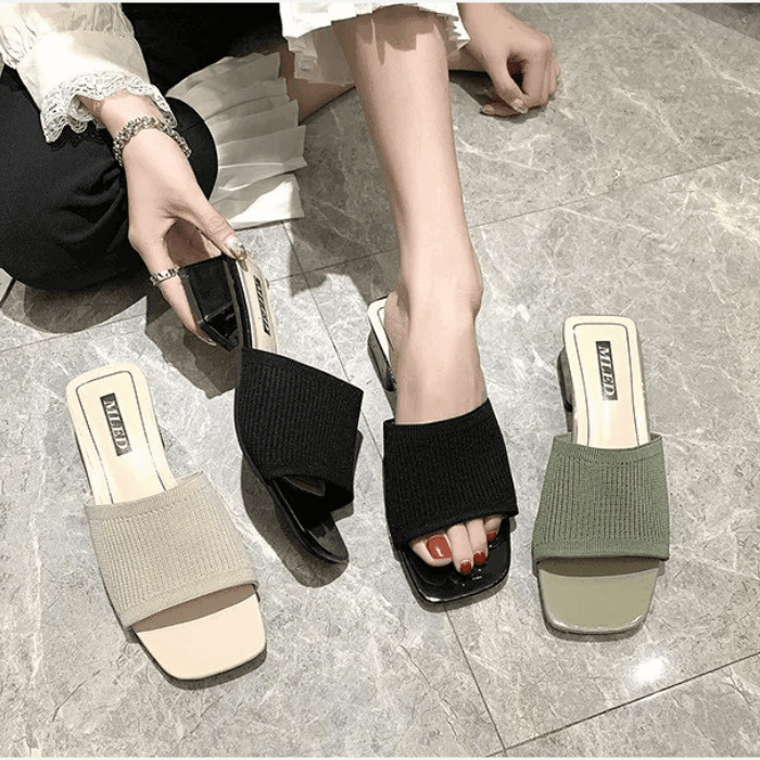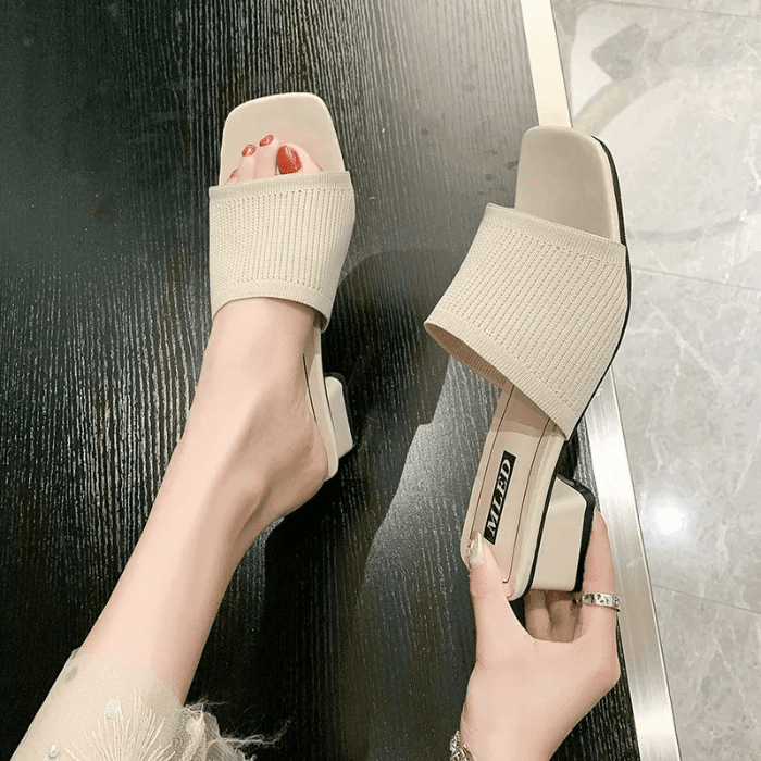 Design chic et intemporel : Talon carré élégant et bout ouvert pour un style sophistiqué.