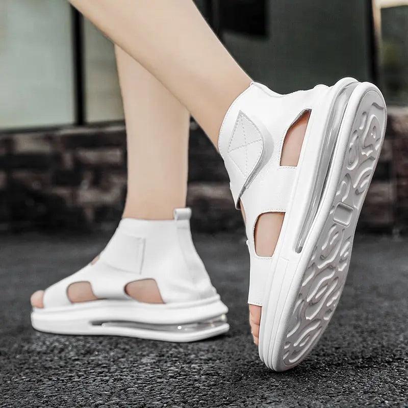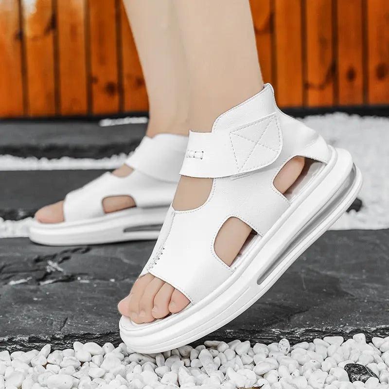 Le style est pratique, la conception Velcro-on. Bretelles réglables pour un ajustement personnalisé. Sandales compensées